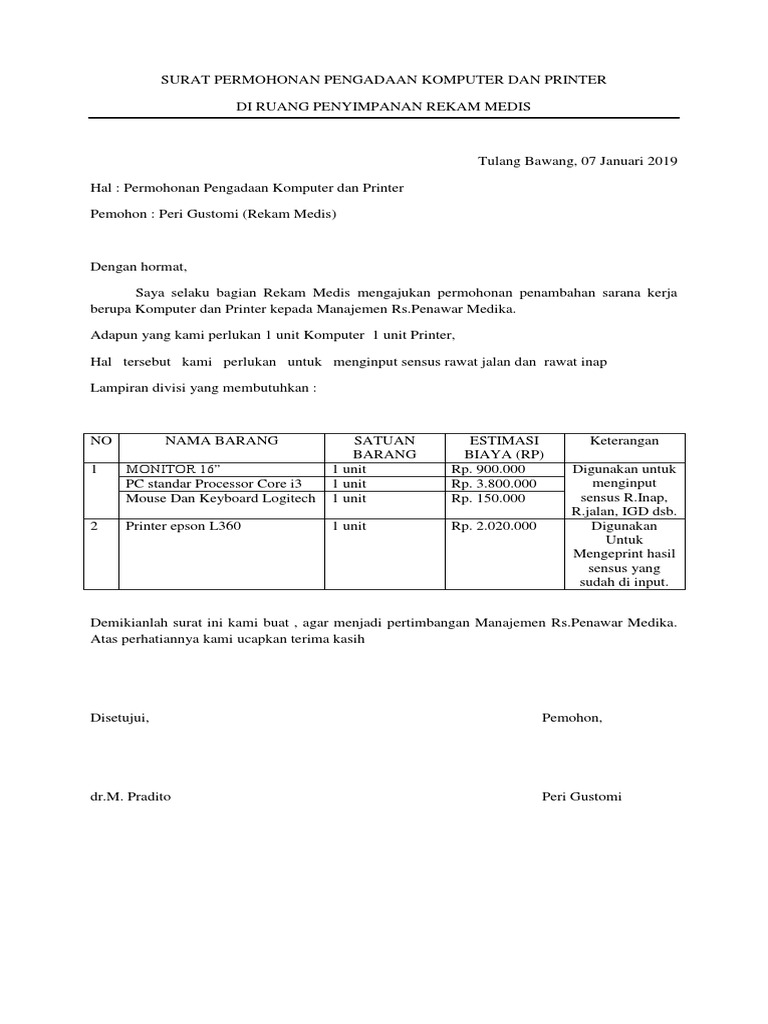 Contoh Surat Permohonan Pembelian Komputer / Surat Permohonan Pengadaan Barang Doc - We did not find results for: